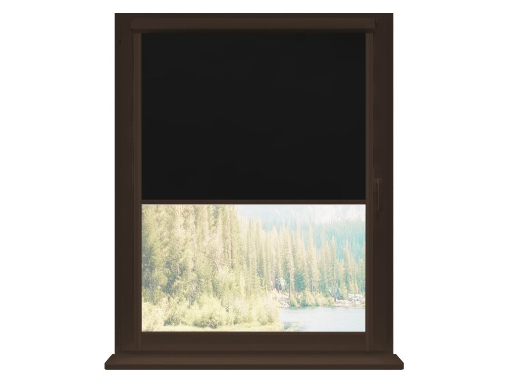 Termoizolační roleta v hnědé kazetě, barva látky Black Silver